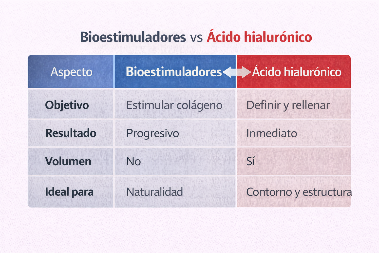 ¿Cuáles son las principales diferencias entre bioestimuladores y el ácido hialurónico?